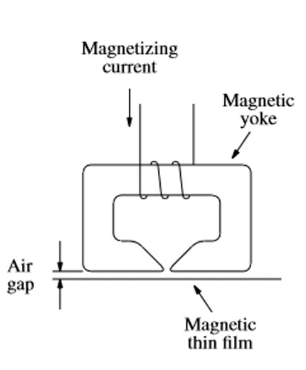 - 写入原理:通过向磁化线圈施加适当极性的电流脉冲,数字信息就可以被存储在磁盘的磁性薄膜上。