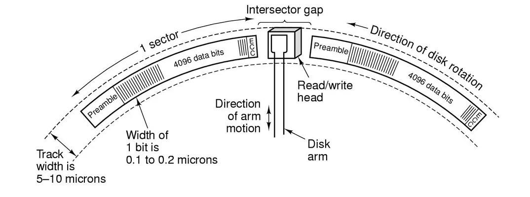 - 固定头:这种方式下,每个磁道都有一个读写头,这些读写头安装在固定的刚性臂上。