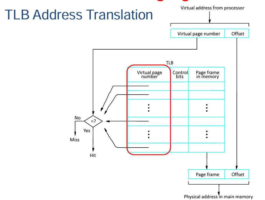 - TLB 未命中:由于 TLB 中的条目数量远少于主内存中的页面数量,所以 TLB 未命中情况会比真正的页面故障更为频繁,并且 TLB 未命中会导致额外的内存访问操作。同时,TLB 要和页表保持一致性,当操作系统更改页表内容时,必须同时使 TLB 中对应的条目失效。、