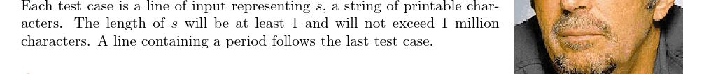 因为这道题目是有多个数据输入,且一行一个\(s\),所以我们可以用\(getlin(cin,s)\),只需要当\(s\)为"\(.\)"时结束即可。