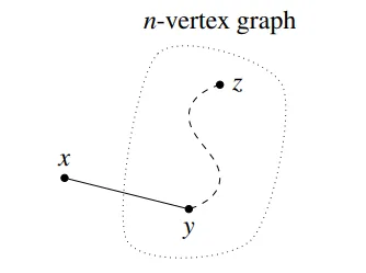 剩下的就是检查从\(x\)到其他每个顶点\(z\)是否有路径。由于\(x\)的度数至少为 1,存在从\(x\)到其他某个顶点的边;称它为\(y\)。因此,我们可以通过将边\(\{x,y\}\)连接到从\(y\)到\(z\)的路径来获得从\(x\)到\(z\)的路径。这证明了对于\(n + 1\)的声明。