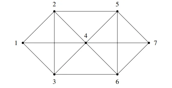 - \[ 1\to2\to3\to4\to1\to3\to6\to4\to5\to2\to4\to7\to5\to6\to7 \] - 将是一条欧拉路径(数字是按顺序访问的顶点)。注意图中有 14 条边。